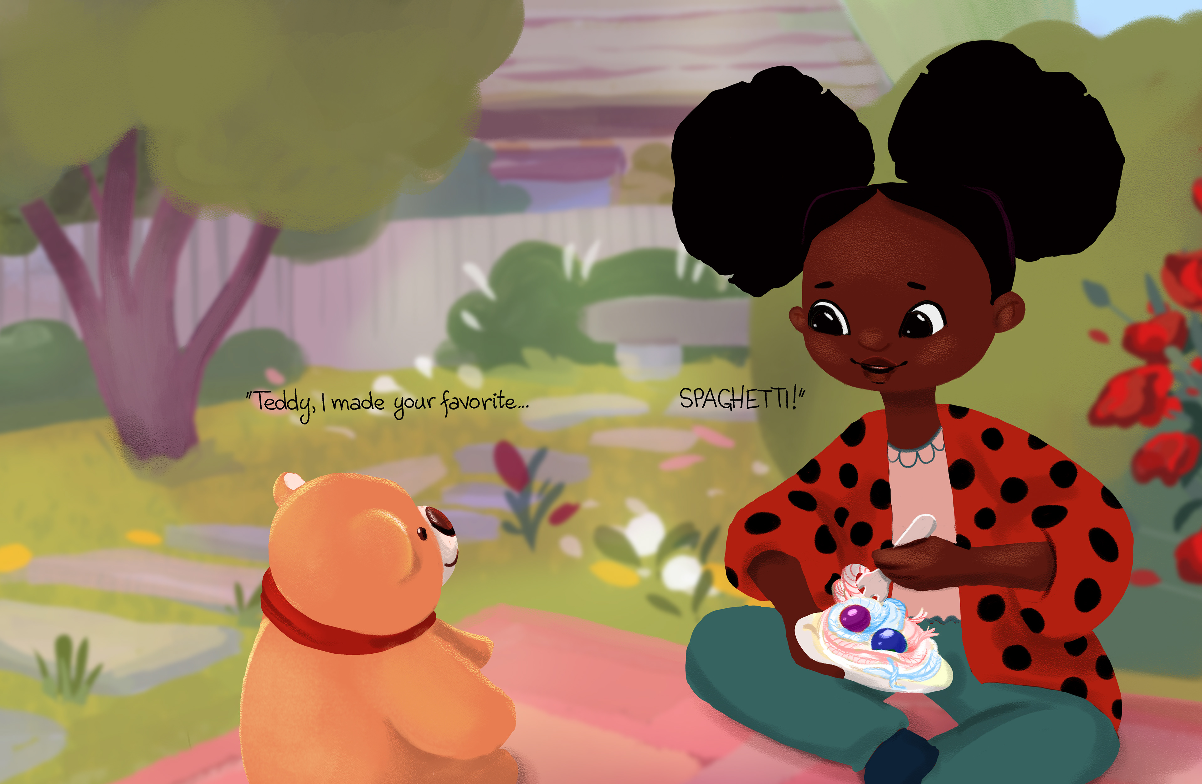 I illustrated the three-book series focusing on the children's emotions, and trying to best show them through facial expressions, color palettes, and composition.